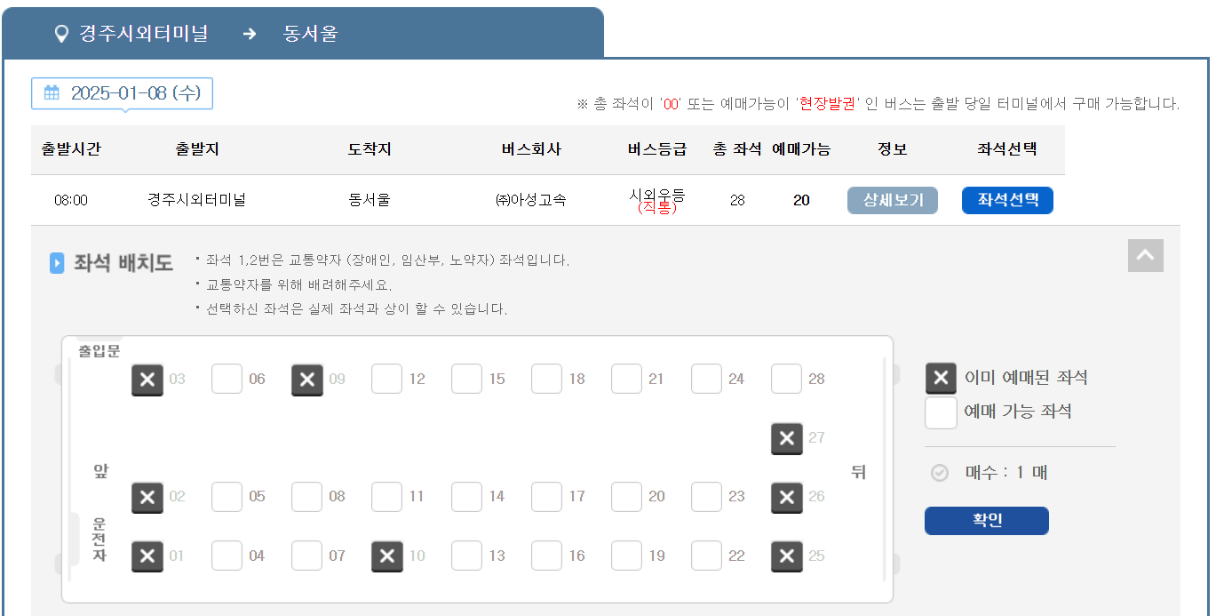 - '버스타고' 또는 '코버스'와 같은 공식 예매 사이트를 통해 간편하게 예약 가능