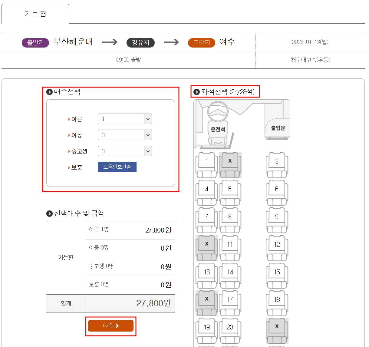 - 예매 마감 시간: 출발 1시간 전까지 온라인 예매 가능