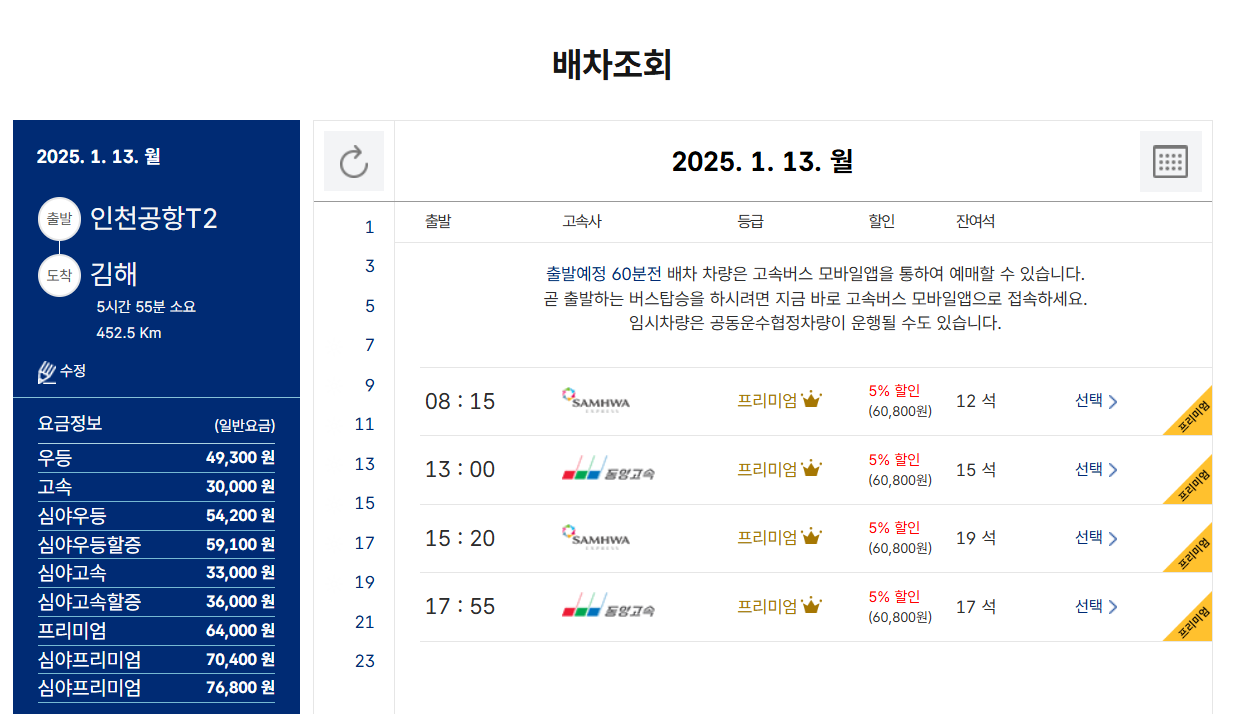 - 공식 웹사이트(코버스/티머니)나 모바일 앱을 이용해 간편하게 예매하세요.