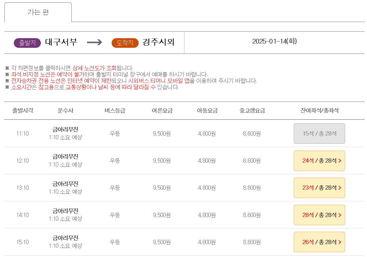 대구서부시외버스터미널 시간표 확인 및 예매 방법