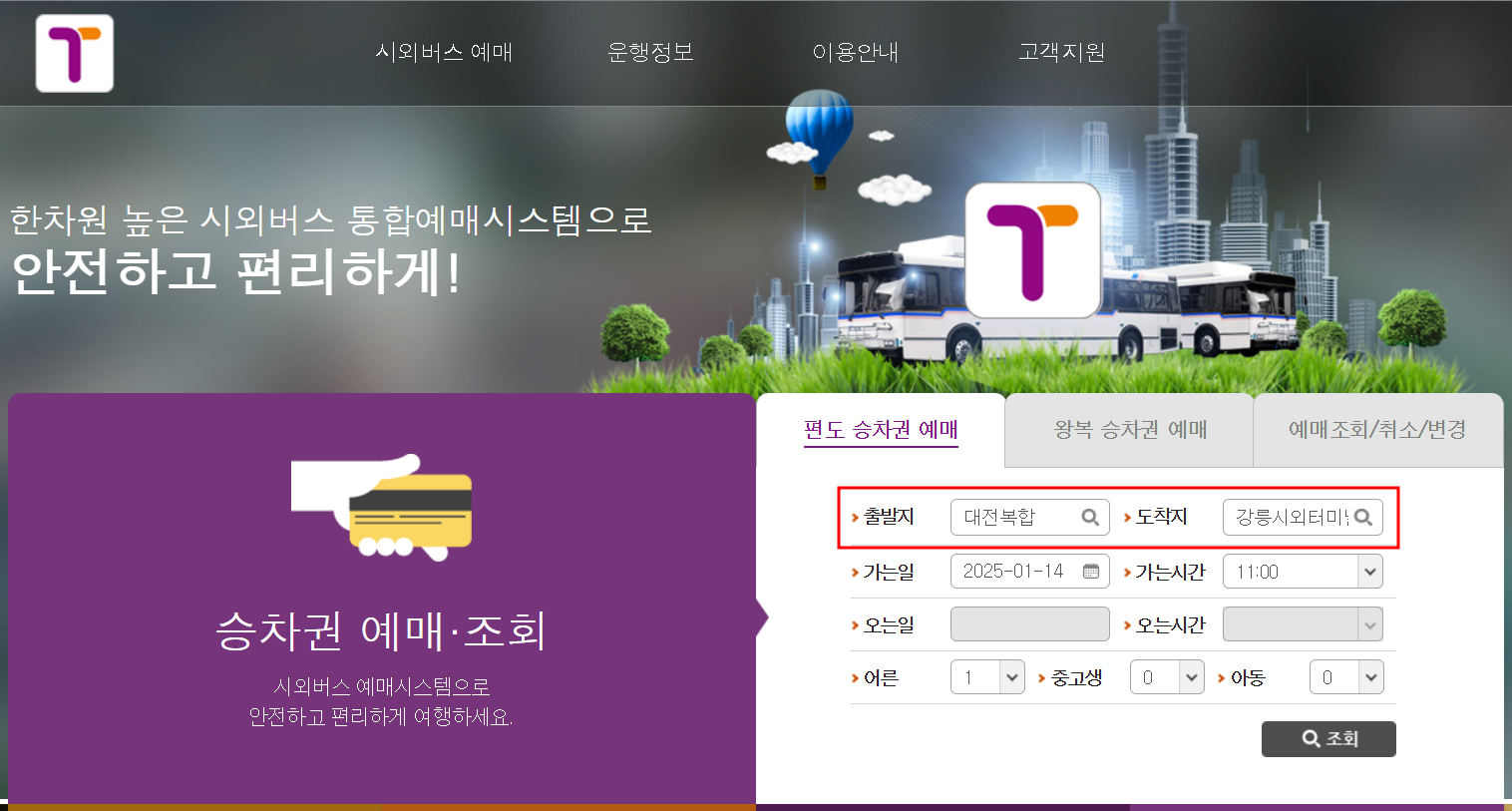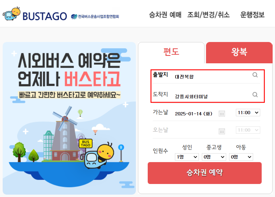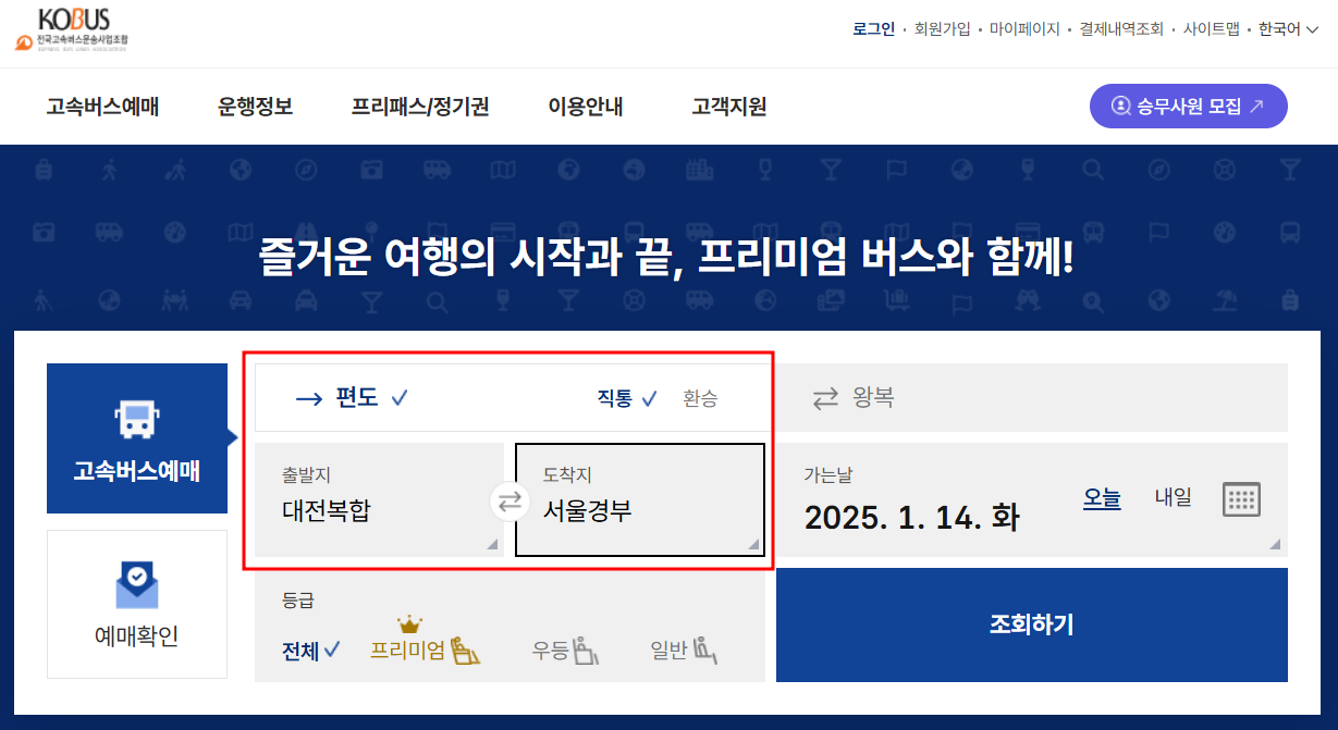 - 검색 방법: 출발지와 도착지를 입력하고 원하는 날짜를 선택하세요. (예: 대전 → 서울)
