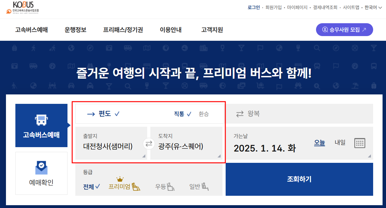 - 고속버스 시간표: 코버스 공식 웹사이트